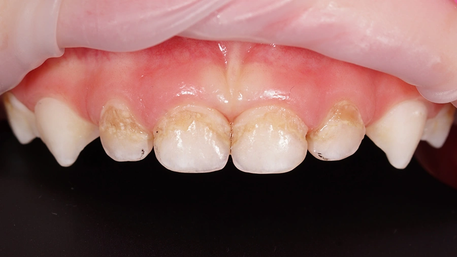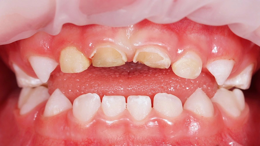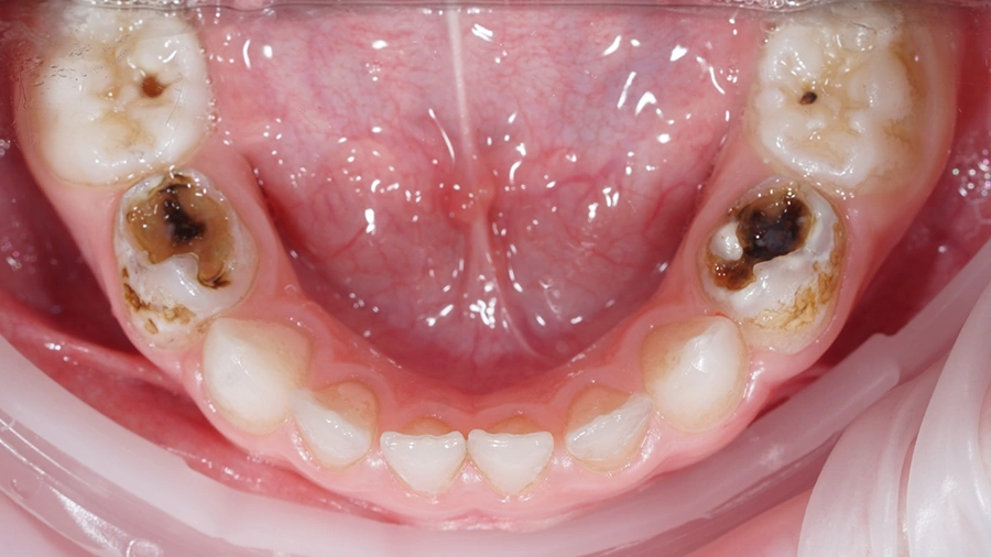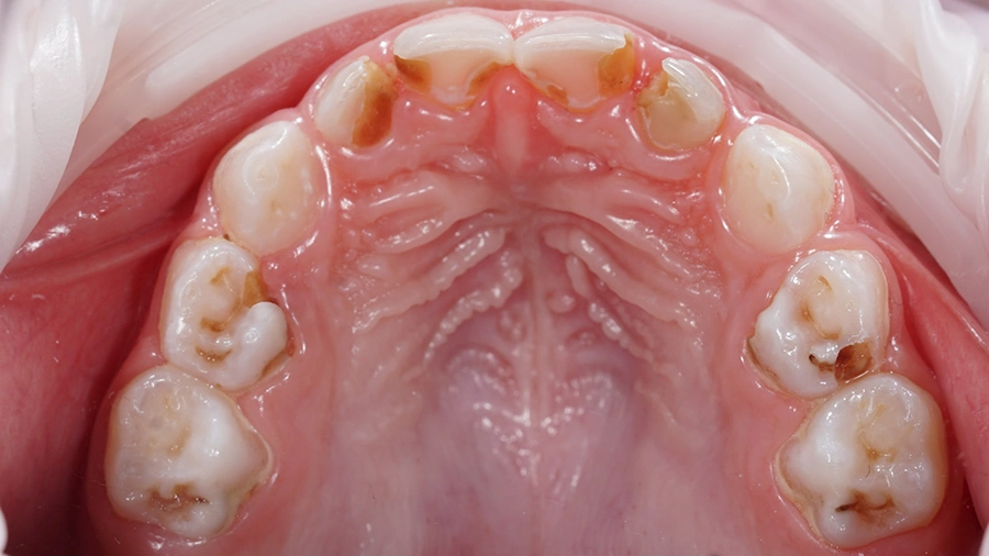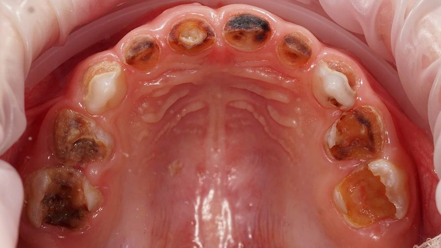 - u dzieci w wieku 2–3 lat, gdy próchnica postępuje bardzo szybko,